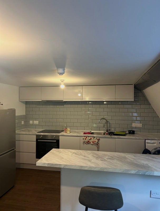 The whole building has been refurbished in the last year so the kitchen and bathroom are brand new. The flat is officially unfurnished but the room would be fully furnished and we have a sofa in the living room.