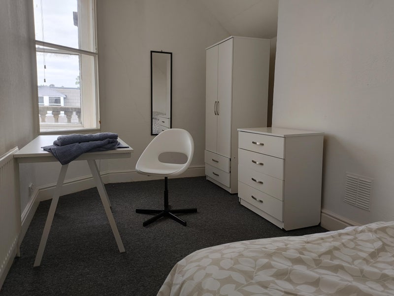 The house is on four floors with the basement containing the large shared kitchen, the lounge and a shower room.