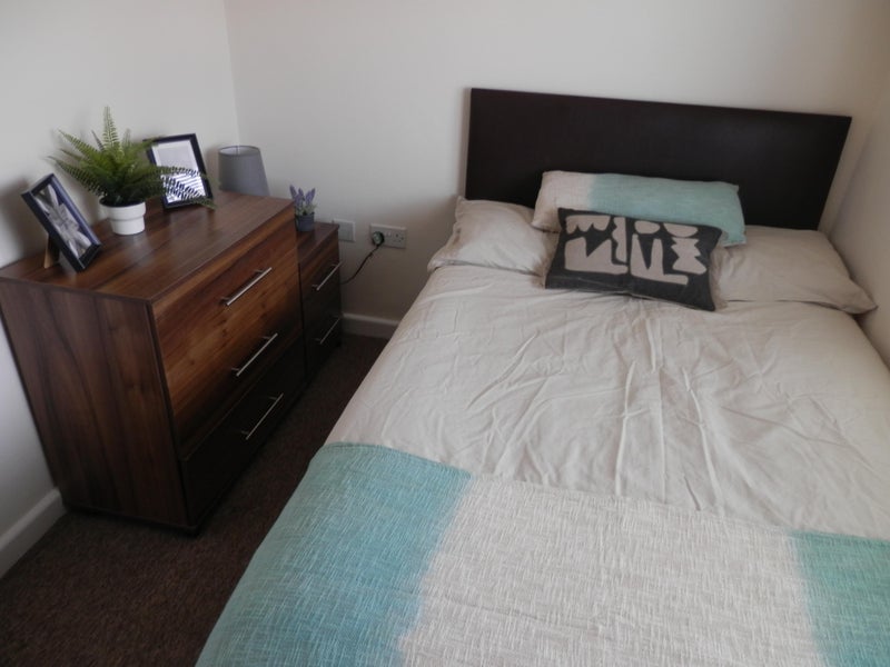* Plenty of storage with wardrobe, drawers and bedside table.