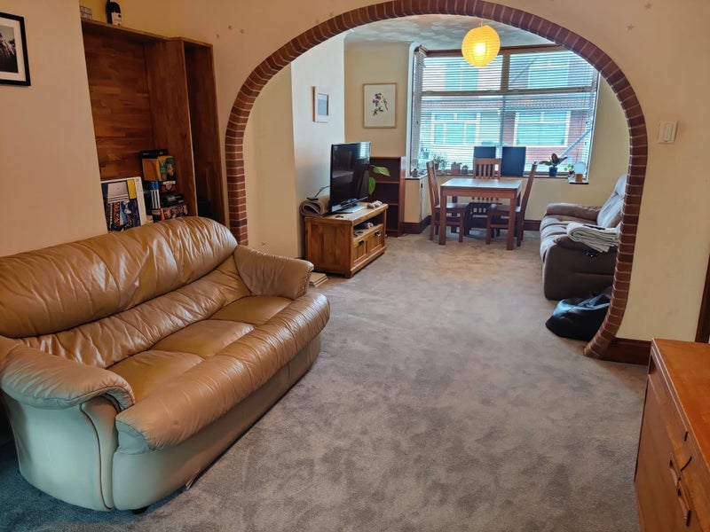 There are 2 bathrooms in the house, one on the 1st floor and one on the 2nd floor. One has a walk in shower, the other has a bath and shower. The ground floor has a large living/dining room (this used to be 2 rooms, but had a wall knocked through and archway put in), a kitchen, and a utility room.