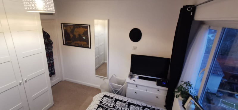 Really nice room available in a two bed flatshare. The property has a large shared living room and good sized separate kitchen/diner. There is a bathroom with shower over and an additional upstairs loo with basin. It has a private patio area looking onto a sunny garden space. This is a two storey annexe flat alongside a larger semi detached property. The landlady does not live in and the current flatmate is male aged 32 years. He is a friendly sociable person who manages a local games shop. He is also a keen gamer and watcher of films. Please tell us a bit about yourself and your interests when you respond to the advert.