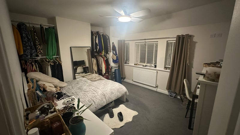 A smaller but still spacious 1st floor double room, big enough for a double bed and wardrobe and desk and one or two bookshelves, cabinets. One medium sized window to the front of the property, providing lots of afternoon light.