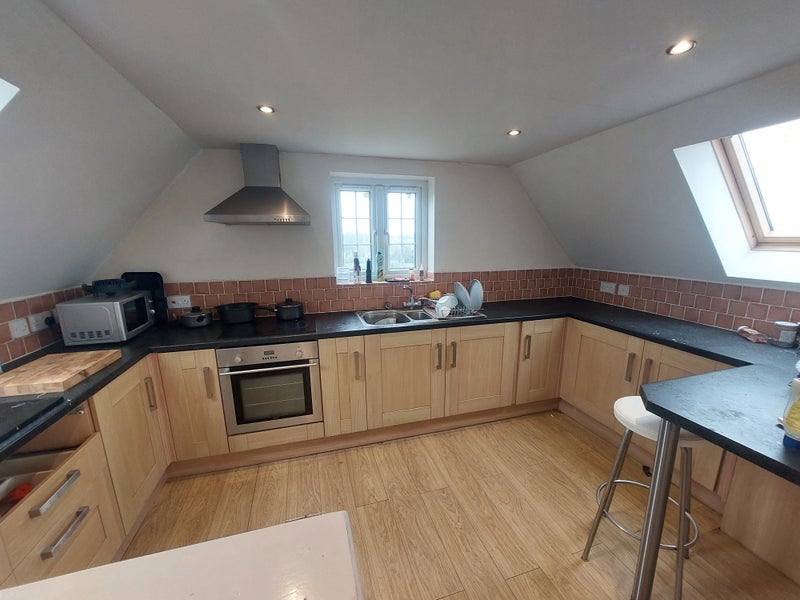 The flat is comprised of a good sized open plan living space with modern kitchen, separate bathroom with shower, and a large double garage. Amazing surrounding gardens and extensive grounds with nature pond.