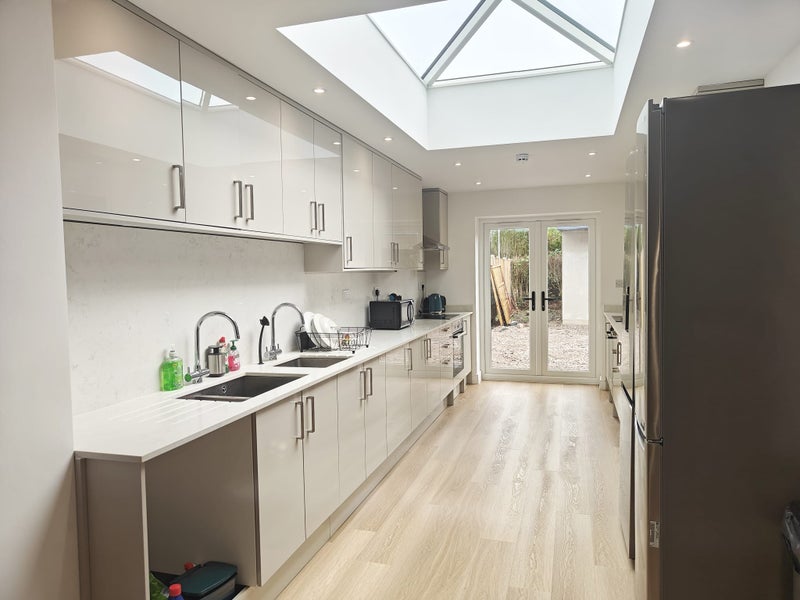 The property has been finished to a high standard throughout and features a large, fully equipped double kitchen with brand-new appliances, a bright and sociable living area, and a generous garden – ideal for relaxing or entertaining.