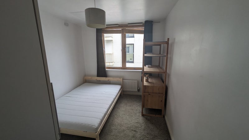 The room is about 8 sqm with dimensions of 3.3m by 2.6m. There is space for a desk should you want one. Bikes are all good, I am afraid there is no car parking included, the flat is within the CAZ.