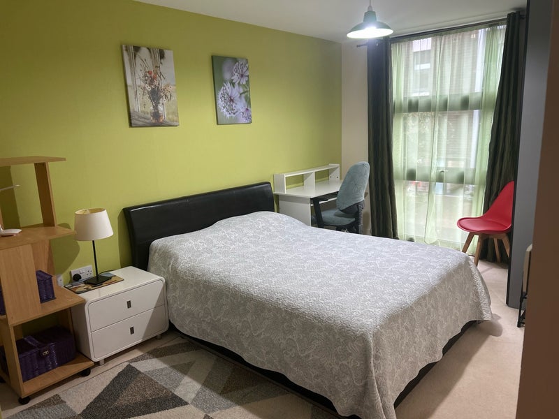 The room is very spacious with a big window, and it's fully furnished: double bed, fitted wardrobe, bedside cabinet, desk & chair, wool beige carpet. The room is very light, warm in winter and cool in summer. A parking space within our secured private car park is available at extra cost (TBA), The building has a secure entrance.