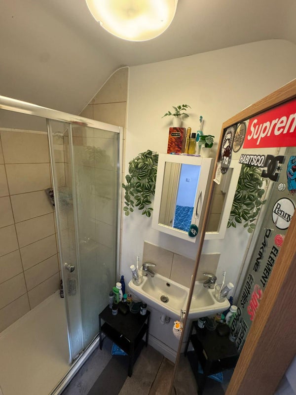 Spacious double room which will be unfurnished with a window that lets in lots of light. The room is not overlooked by any neighbours, and your own bathroom with a shower, and toilet. The lounge is a good open space as well, which hasn't had too much love over the years, so happy to re-arrange to create a more homely vibe. The kitchen is also a good size with plenty of cupboards and space which includes a washing machine with a tumble dryer built in and a dishwasher but I've never used it the whole time I've lived here. The flat also has a small room which I've made into a office space which I am happy for you to use if needed.