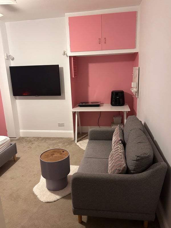 A newly renovated room, single parent family home (all girls) and 2 cats. We had a lovely bright room on the back of the house, looking out on to the garden. Room is fully furnished, with a small kitchenette (air fryer, kettle, toaster). Dishwasher in the main kitchen.