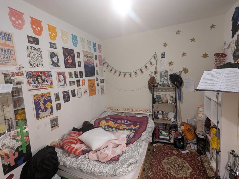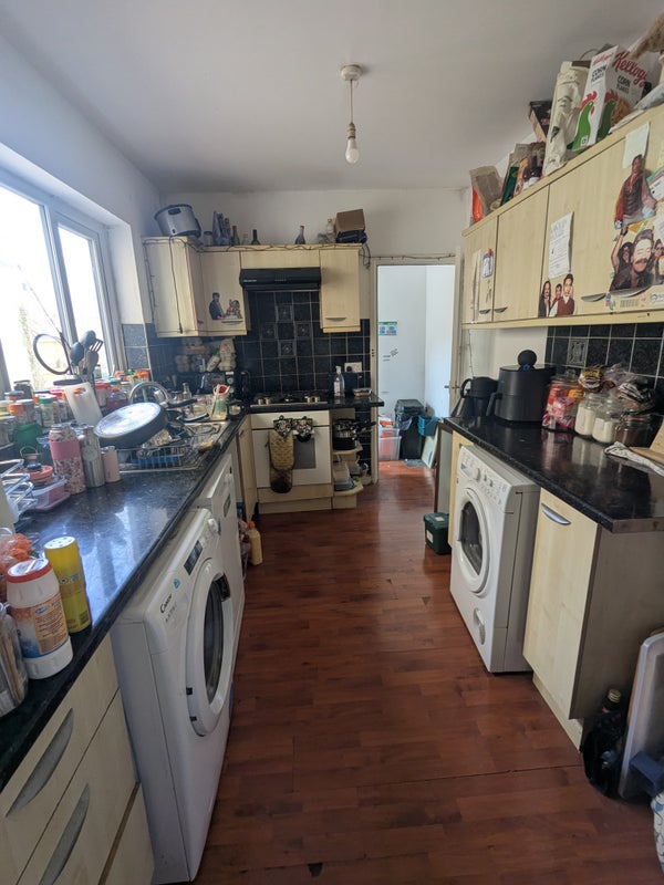 It’s a four bedroom house with a shared living room, kitchen and garden. We also have a dishwasher and a clothes dryer (ooooooo)!