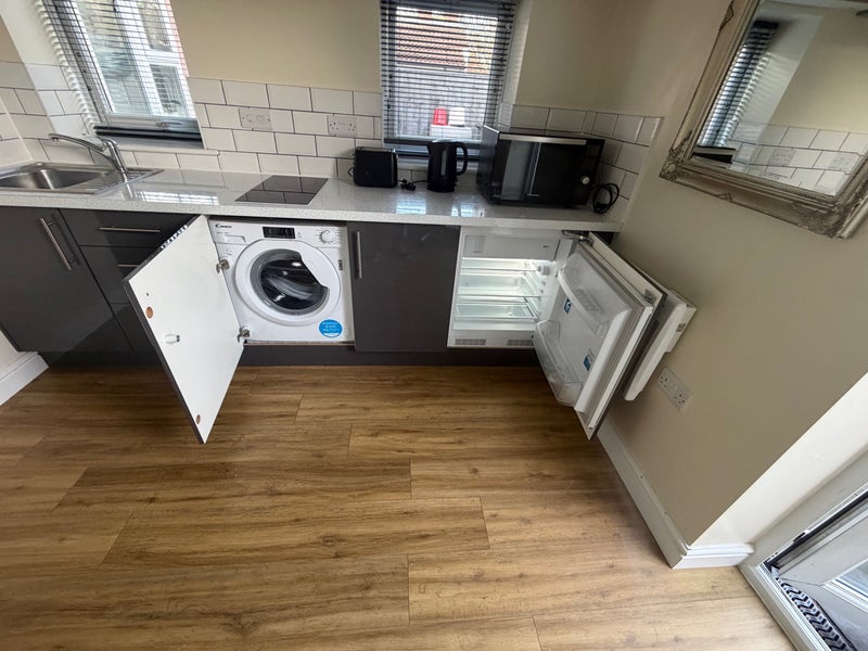 • Private mini kitchen (2-ring electric hob, washing machine, fridge/freezer, sink)