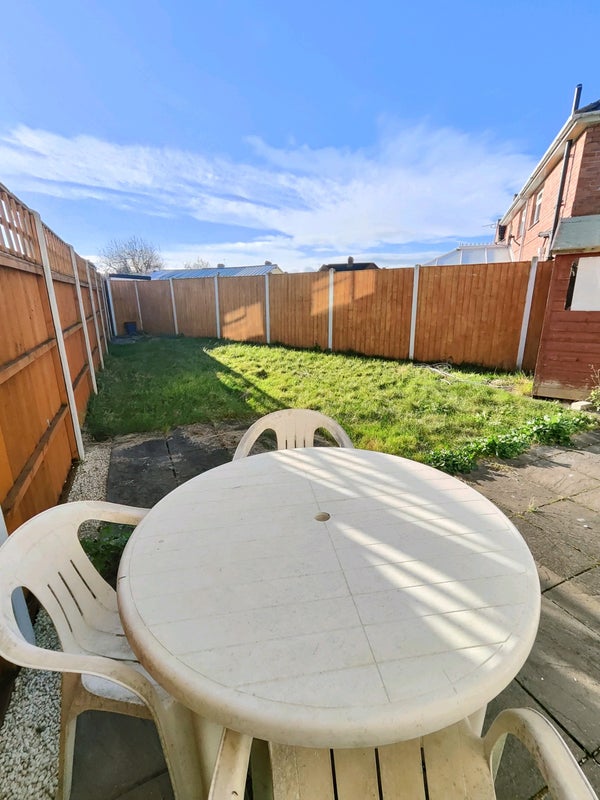 There is a front and back garden, the back has long washing lines, a patio and hose for washing down kit/bikes plus two sheds. You can access the shed and the garden through a side gate.