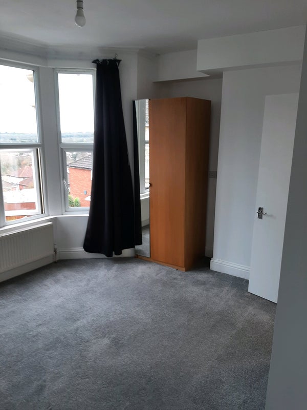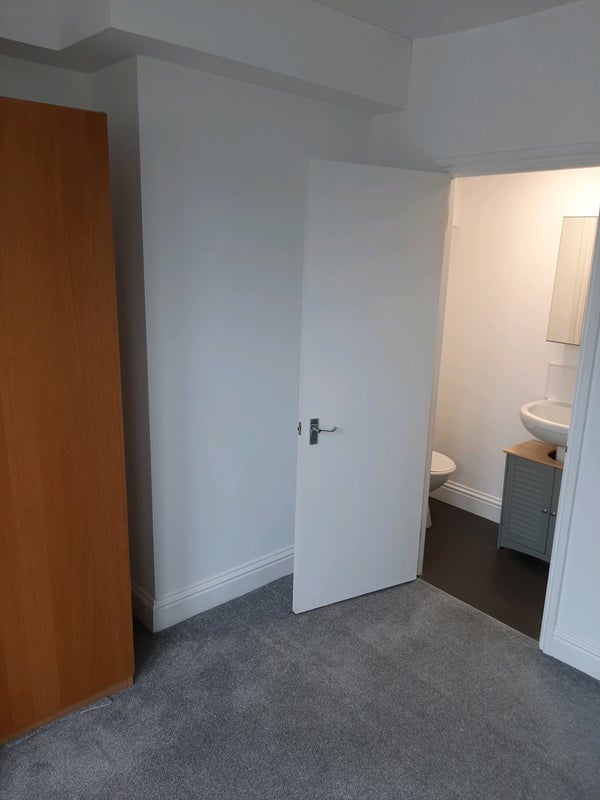 Room is spacious enough to fit a double bed with ample room for other furnishings, and also includes an on-suite bathroom, large bay window, and storage cupboard.