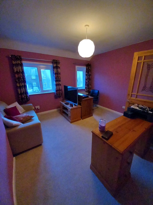 We have a driveway that can take 2 cars and plenty of free on street parking. Large garden, 2 bathrooms rooms, communal lounge and a communal study/lounge, kitchen, conservatory.