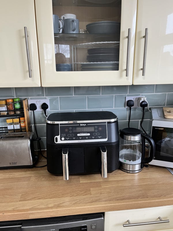 Shared living room with large TV & multiple streaming services, kitchen with all the appliances including a double air fryer, and newly renovated bathroom.