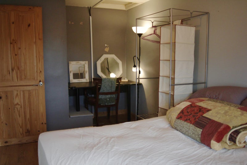 Hello! We have a lovely, bright room available that gets beautiful afternoon sun, overlooking our southwest-facing garden. It comes furnished with a double bed, bedside table, wardrobe, desk, mirror, chair, and lamps.