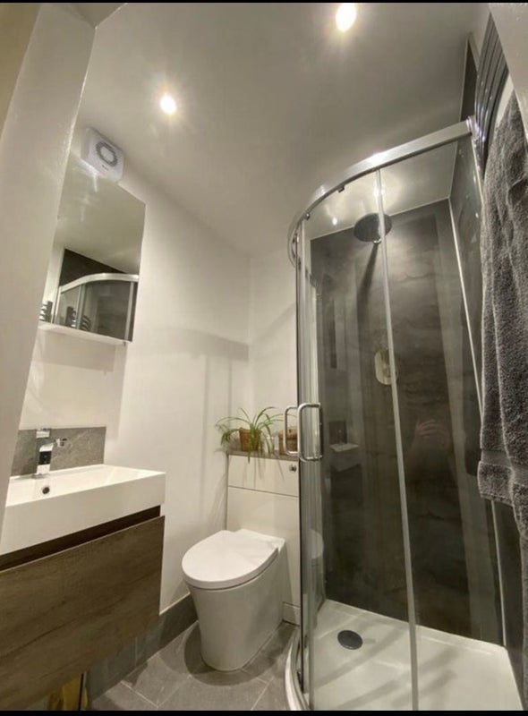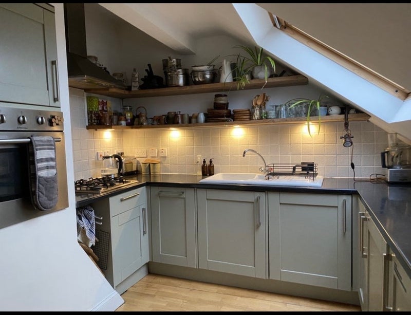 The flat is on the top two floors of a house (with three flats below) and has amazing views over Bristol. It’s a two-bedroom, two-bathroom flat, so you’ll have your own ensuite, plus a spacious shared living room and fully equipped kitchen.