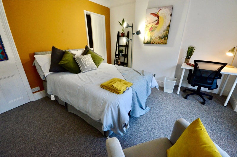 The property offers six DOUBLE bedrooms, each furnished with clothing storage, bed, a desk and chair, providing comfortable and practical study spaces. Two living areas split over two floors with one featuring a SUN ROOM with large windows, you’ll benefit from lovely NATURAL LIGHT. A walk through kitchen from living area creates a sociable hub for cooking, relaxing and spending time together. The property has recently been REFURBISHED THROUGHOUT and the house also benefits from a private rear GARDEN— a RARE FEATURE in this part of the city.