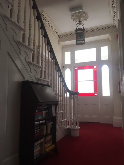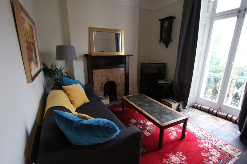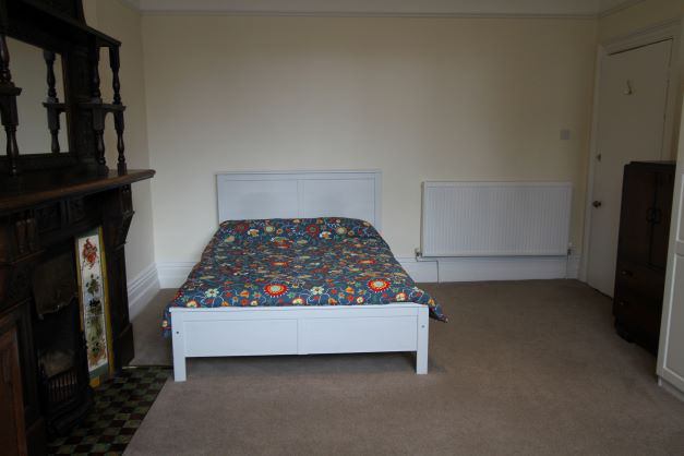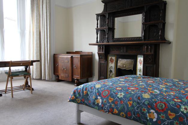 One lovely large furnished double room to rent (approx size 4m by 6m – 24m2) with a high ceiling, decorative cornicing and a beautiful ornate fireplace, located in a quiet shared Victorian townhouse.
