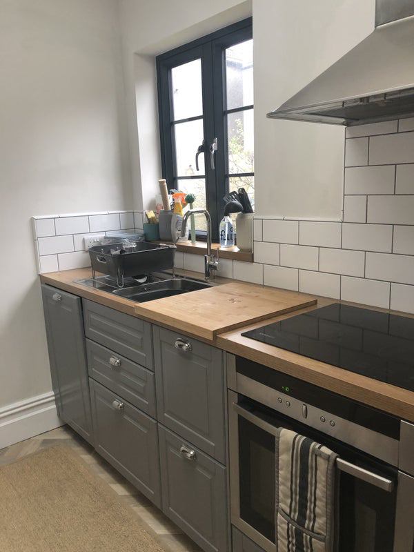 The ground floor kitchen is fully equipped with a tall fridge freezer, NEFF oven, dishwasher, Samsung washer dryer and plenty of cupboard space.