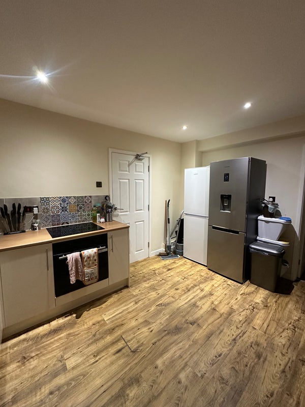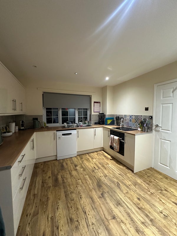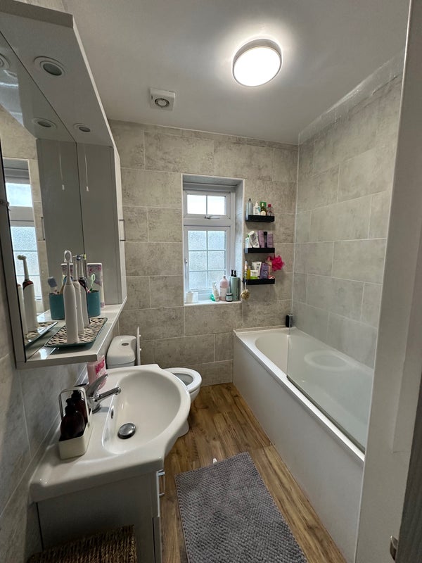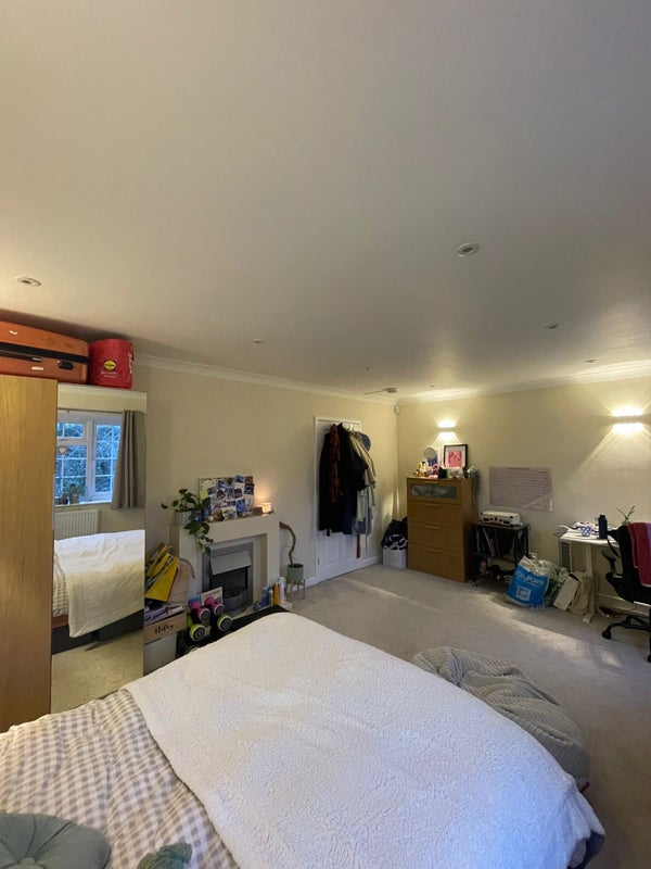 It’s a huge room, the biggest in the house, with plenty of natural light in the day and facing the garden. Plenty of space for a desk, or even a sofa! You’ll be sharing a bathroom with all of us and we have a toilet downstairs.