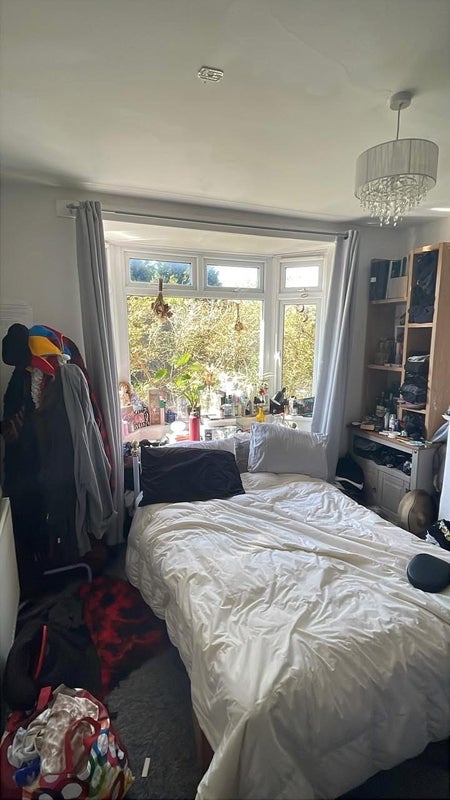 A spacious downstairs double room with big bay windows ! Has fit me and my partner comfortably. House is a 2-story 4 bed with a bath and massive garden (greenhouse, patio, barbecue, apple tree, treehouse) and a large secure garage - perfect for motorbikes or car enthusiasts. Comes with a private driveway and on street parking. Big shared kitchen and living room with lush patio doors ! Just off the high street of Shirehampton village 10 minute drive outside of Bristol city centre across the River Avon. Lovely quiet area with neighbourhood watch. Co-op and Lidl nearby.