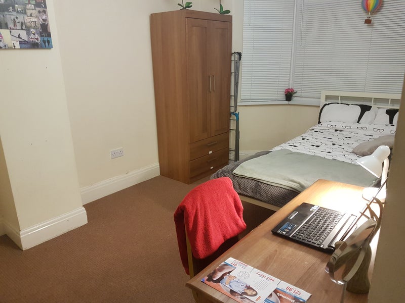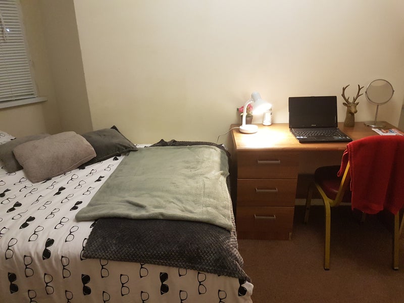 Very good size room - downstairs, in a perfect location for young professionals. Room is furnished with Buckingham steel frame double bed with high-quality double sprung mattress and good under bed storage space, 2 door wardrobe, desk, and chair. Plenty of floor space.