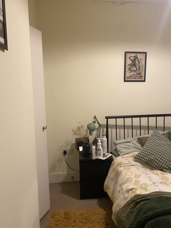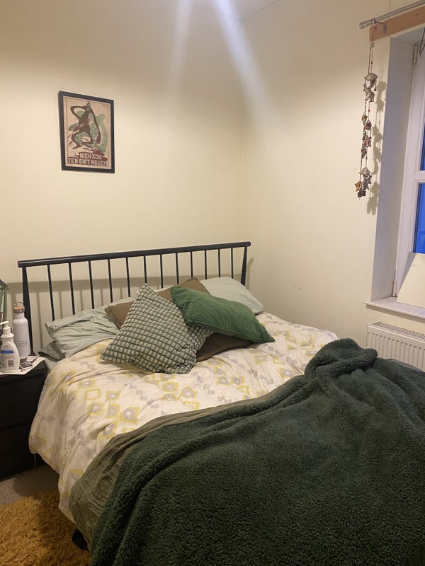 The room has a huge window and a large built in wardrobe. If you would like to I can leave my bed frame and mattress but can also get rid of them if needs be! The living space is open plan with lots of storage and the house has 2 bathrooms.