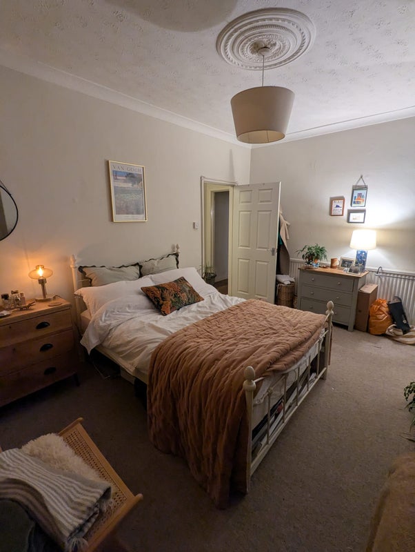 The room is unfurnished but the wardrobe is staying, and the rent is £540. Bills max are £150 a month depending on the time of year.