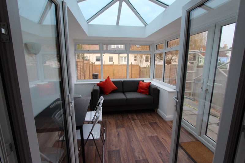 Fully furnished kitchen including washer dryer with conservatory lounge/dining area.