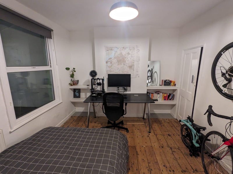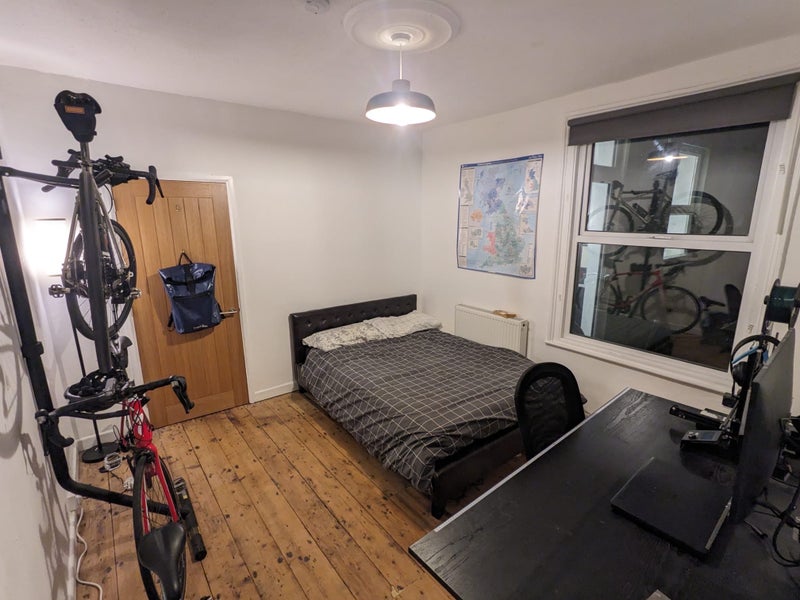 The room available is a spacious room on the ground floor, with a walk-in wardrobe and a window overlooking the garden. The room comes unfurnished but the leaving tenant is willing to leave the mattress and desk if wanted. This room is available from the 22nd March and the deposit is roughly 5 weeks rent.