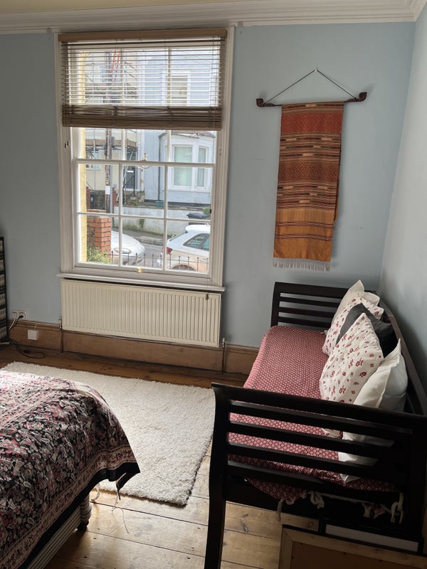 Bright airy double room in friendly neighbourhood 10 mins walk to Temple Meads, 25 mins walk to city centre, good public transport links. Available Monday to Friday.