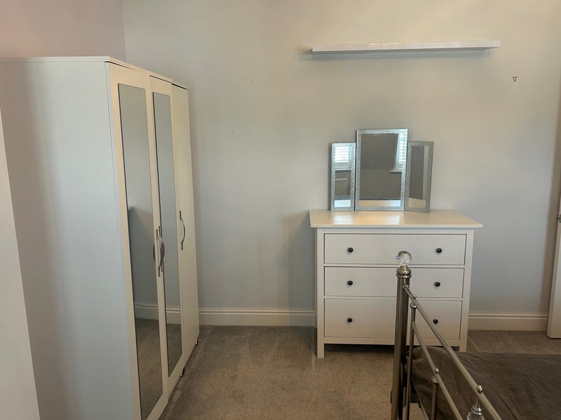 Furnished and well presented large double room to rent 7-days a week in a spacious 4 bedroom town house (3 stories) in Watermead, Aylesbury. Room on top floor with separate bathroom shared with one other and use of lounge, dining room and kitchen together with all other amenities and court yard. Storage space available in garage.
