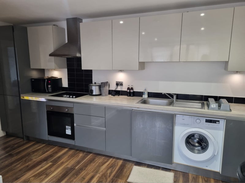 Shared kitchen with modern appliances.