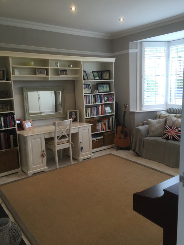 House owned bt interior designer in Beaconsfield town centre. Luxury living in a shared home. The bedroom has a double four poster bed, the room is pictured here without the bed as I can’t get in to take a photo because it’s occupied. If interested I will be able to.