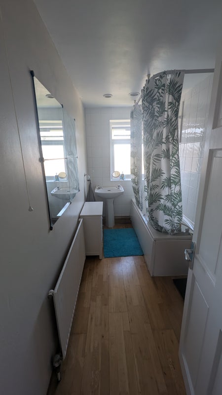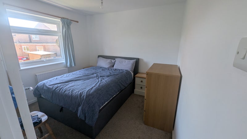 Hello, my name is Tom. I own and live in a flat in Chesham (council tax band c). It's a 10 minute walk from Chesham underground and the high street. The room has a double bed with storage underneath, chest of drawers and clothes rail. Flat has a shared bathroom, kitchen with dishwasher, and living room with desk and small dining table.