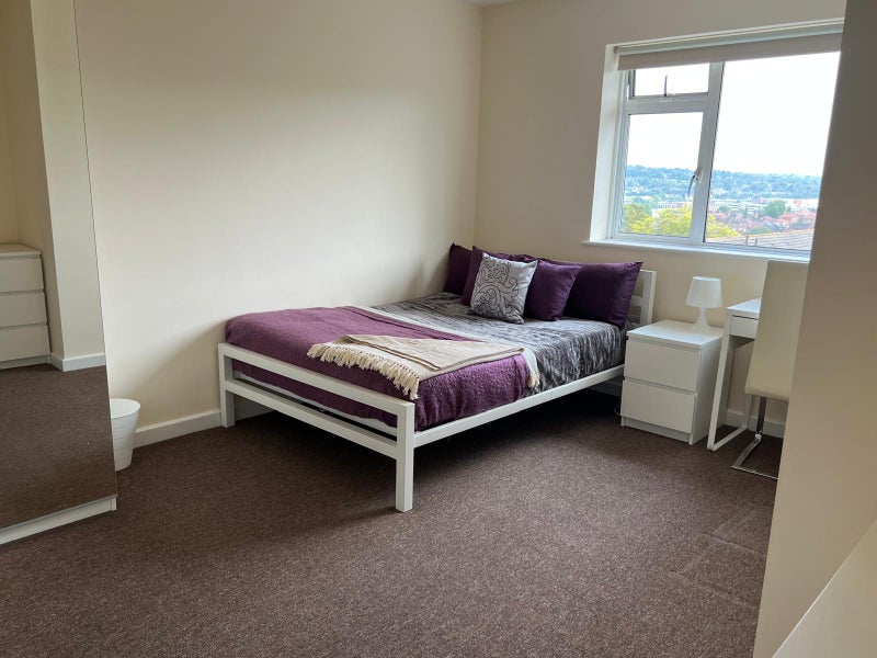 🛌🏽Fully furnished bedrooms; double bed, wardrobe, chest of drawers, bedside table, desk and chair