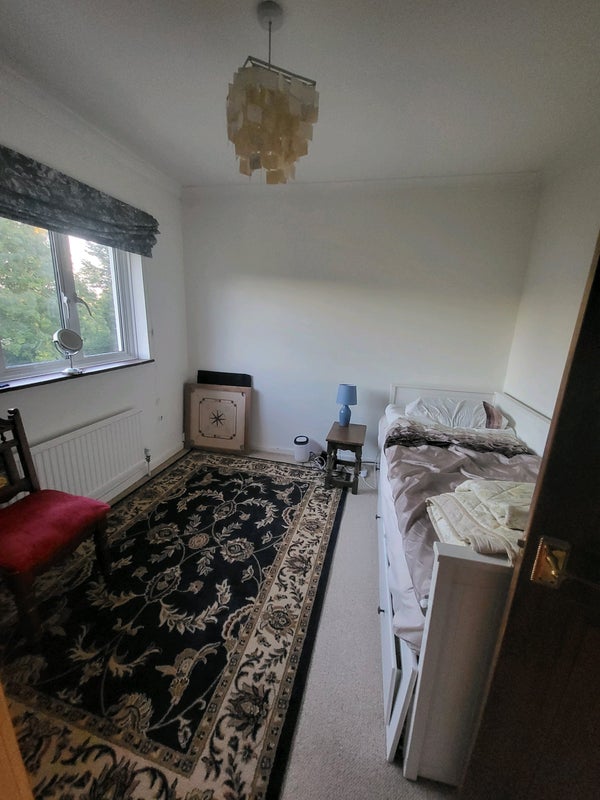 You’ll have access to the living room, kitchen and utility room. There’s a shared bathroom upstairs plus a downstairs loo. Driveway parking is available, and there are outdoor security cameras for peace of mind.