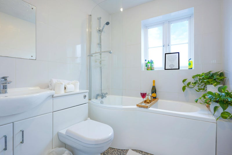 There is a modern shared bathroom with bath and shower, and the property is kept clean and tidy throughout.