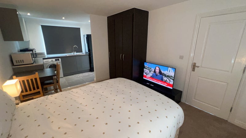 I have a large en-suite studio room with own kitchenette facilities available in a choice location of Broughton, it has kingsize bed and mattress, bedside cabinets, washing machine, Fridge freezer, Microwave etc.
