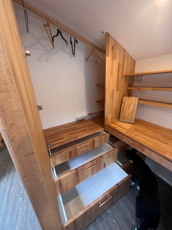 Clothes rail and lots of chest of draws.