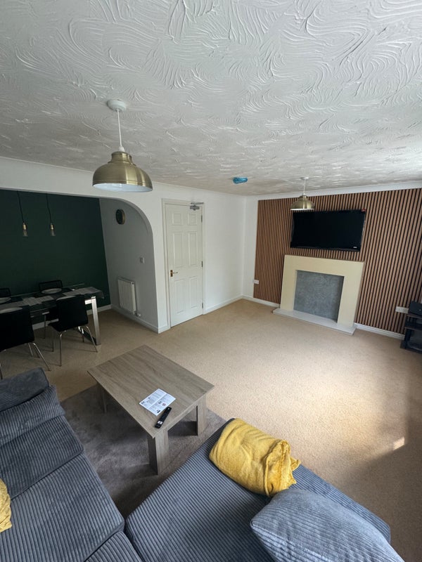 On the 2nd floor is a spacious modern lounge/ diner complete with a wall mounted 50" TV with Netflix included. There is also a large kitchen with breakfast bar, double oven, gas hob, air fryer, microwave, kettle, toaster, large fridge/ freezer and an additional under counter fridge.