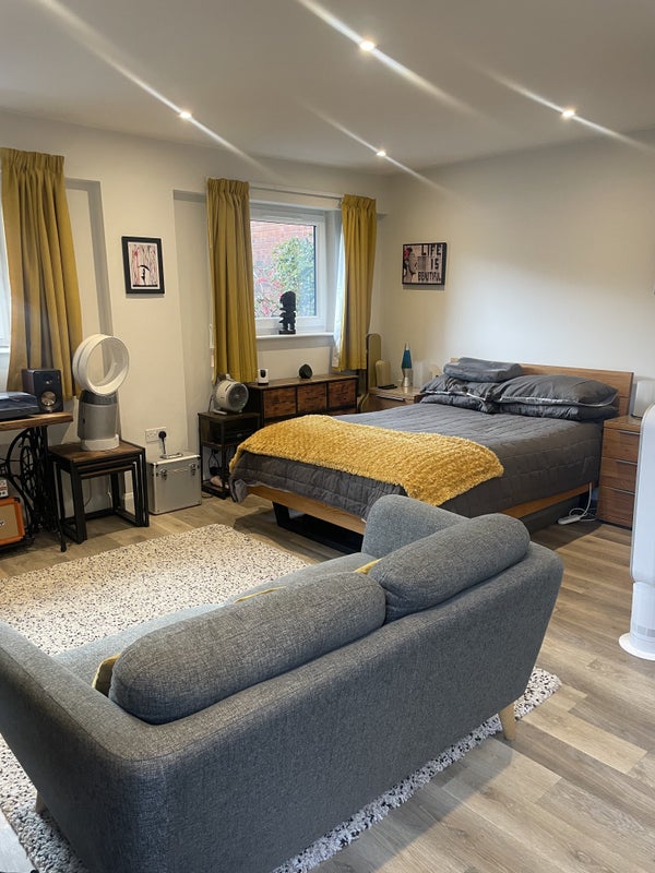 We have a cosy and very comfortable and private studio conversion which will become available on 1st May. It id a bright, airy space but with blackout curtains for better sleep. It will be a private ‘home from home’ to the right person. All are welcome so long as they are considerate and tidy.