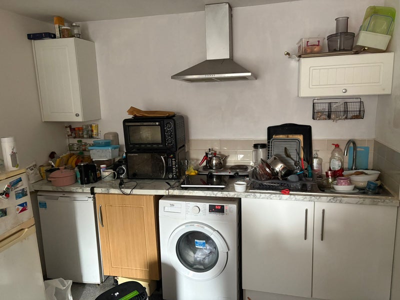 Comes with fridge and washing machine but no bed