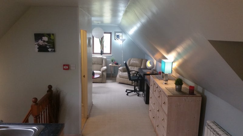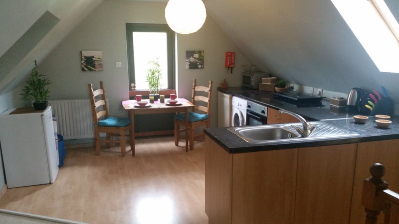 The Apartment is the whole top floor of an executive house and access is through the main house. It has its own fully fitted kitchen inc washing machine, bathroom, lounge and bedroom.
