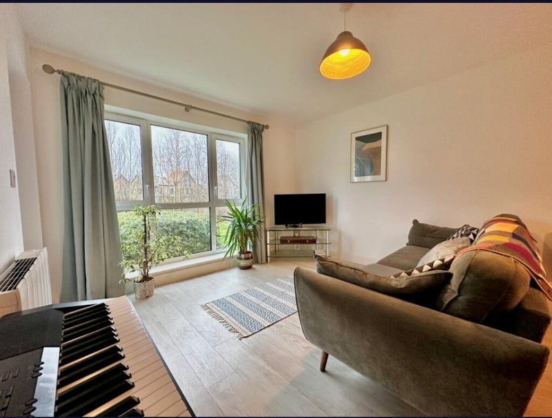 Furnished double room available smart new build, two bed ground floor flat. Open outlook with views to wildlife preservation area from bedroom. Sole use of bathroom. Shared kitchen, lounge and terrace.