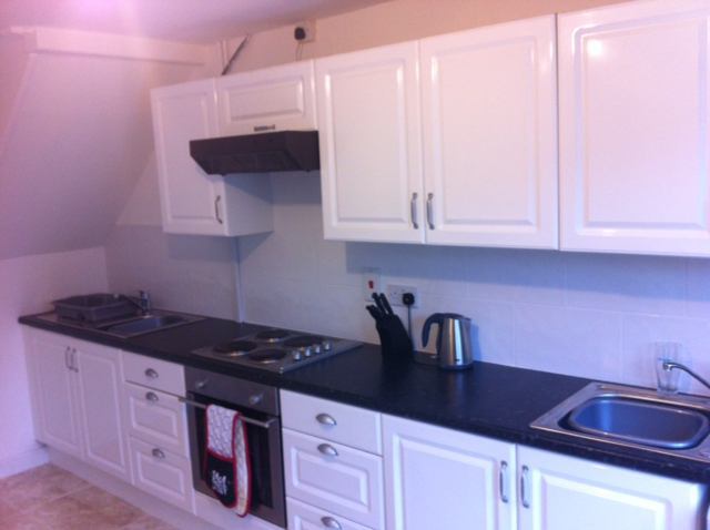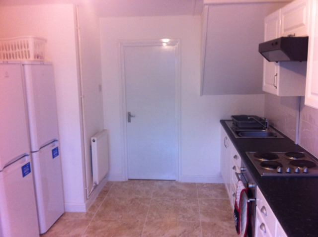 Fully Fitted communal kitchen/diner with washing machine and 2 fridge-freezers.