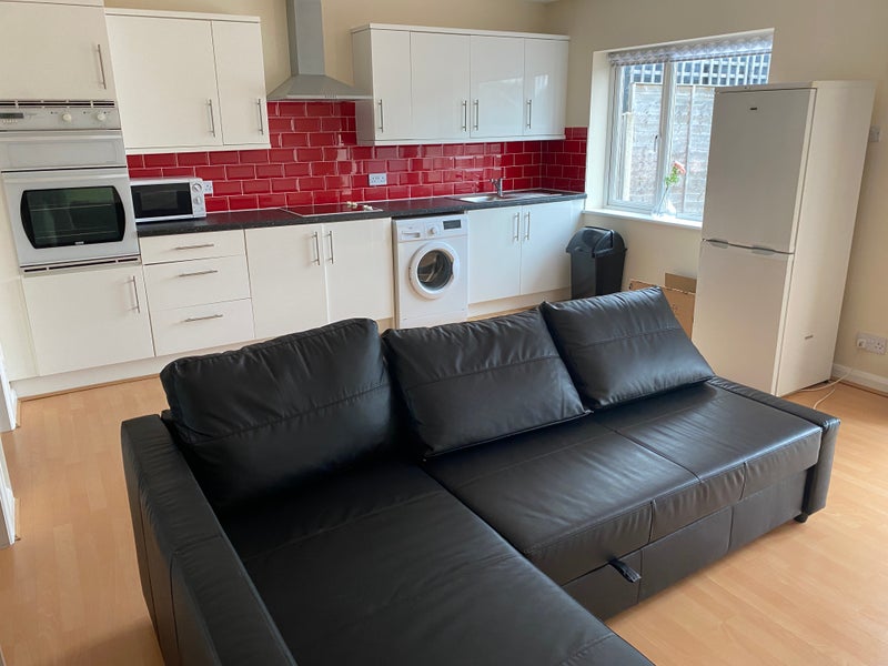 It comes furnished with a double bed and mattress, wardrobe, sofa bed, and all white goods, so it’s ready to move straight into.