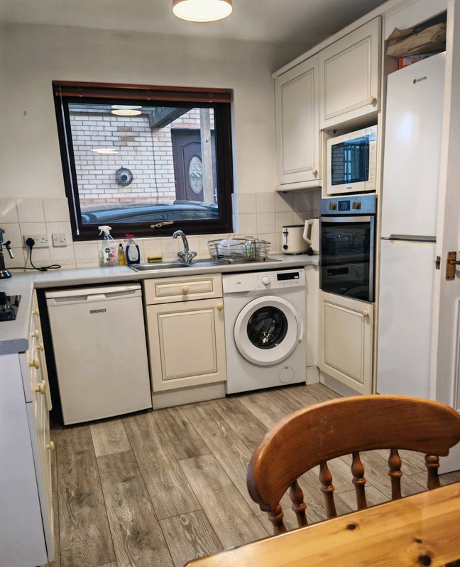 The property features a shared kitchen with all the essential appliances, a brand new washing machine, and a tumble dryer.