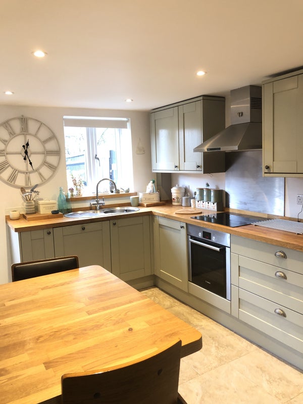 Downstairs is a fully fitted shared kitchen . Includes fridge / freezer, washing machine, dishwasher, oven and microwave.
