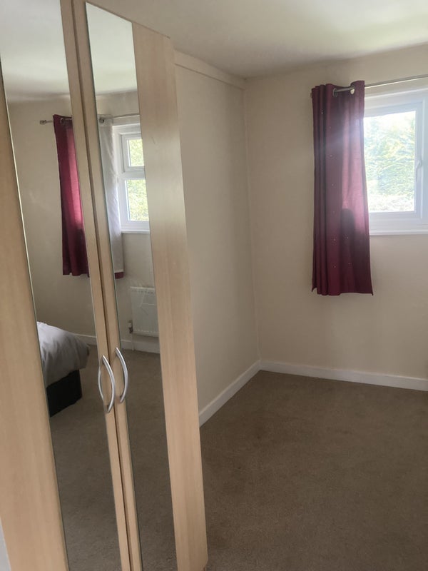 Good size double room in 2 level maisonette with garden. . Is partially furnished with wardrobe, ottoman bed, bedside table. I can add drawers if required. Shared bathroom and kitchen. Parking outside the property. There is a park directly behind. Conveniently located for M40. About 20 mins drive to Pinewood studios